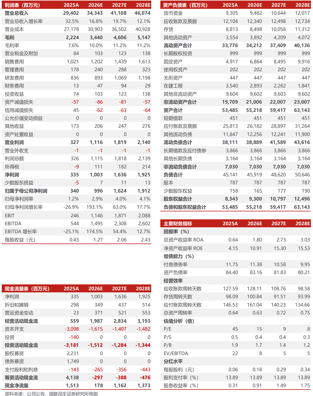 2026年3月23日,公司发布2025年年报,2025年实现收入294.02亿元,同比增长32.45%;归母净利润3.40亿元,同比下降26.87%;扣非归母净利润2.93亿元,同比下降16.88%。