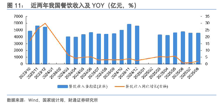 供需再平衡:资本开支高峰暂过,需求在政策与消费复苏下逐步修复:供给端,行业资本开支在2023年后显著回落,产能集中释放期接近尾声,企业重心转向提升产能利用率。价格战虽阶段性压制盈利,但头部企业已转向战略调整,如安井食品、千味央厨等通过产品与渠道优化应对竞争,价格不再是主要竞争手段,这一点在25Q3财报也开始显现,行业经营层面或迎拐点。需求端,餐饮开关店趋于平稳,店效虽承压但整体处于缓步修复通道,国庆出行数据创历史新高显示消费韧性。政策端,国家与地方层面协同发力,通过餐饮高质量发展指导意见、经营管理办法等,强化服务业预期,餐饮作为就业吸纳与外溢性强的行业,获得持续政策支持。