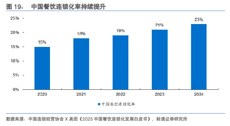 从连锁化率的情况看,我国连锁化率从2021年的19%稳步提升至2024年的23%,对比国外2023年美国餐饮连锁化率60%、日本52%仍有差距,此次外卖大战或进一步加速连锁化率提升。而在连锁化率提升的过程中,标准化和高效率仍是下游企业的核心诉求,这也直接利好上游餐饮供应链企业的发展。
