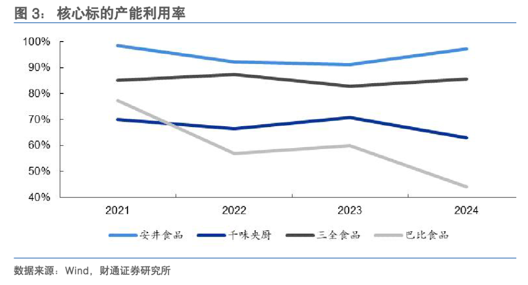 我们梳理了行业近年来的资本性开支情况,食品加工板块资本性支出从2016年开始增加、2020-2023年相对稳定、2023年后开始显著下降。目前行业的资本开支高峰已过,产能的投产在这两年基本落地释放,后续各家企业更多的经营重心我们预计将放在提升产能利用率上。