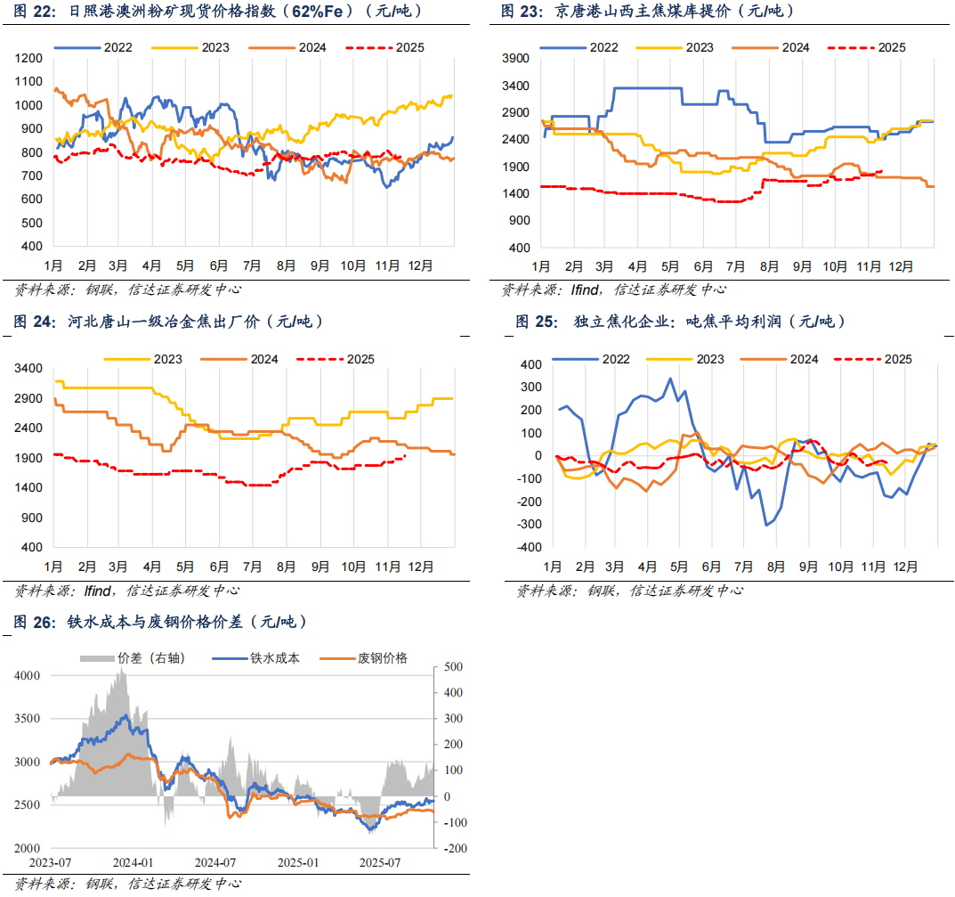⚫ 铁矿石基差:截至11月14日,铁矿石现货基差为9.5元/吨,周环比下降3.0元/吨。