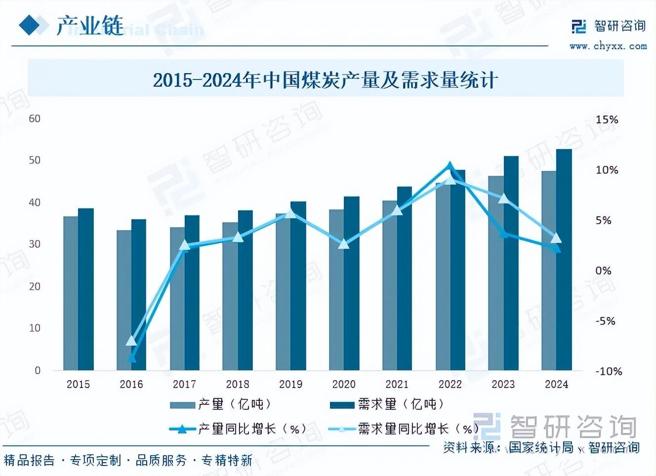 我国是煤炭生产大国,近年来,我国煤炭供应能力持续提升,据国家统计局数据显示,2024年我国煤炭产量达47.59亿元,同比增长2.17%,其中,内蒙古、山西、陕西、新疆、贵州、安徽、河南、宁夏、山东和甘肃十省占比超94.52%,晋陕蒙新四大主产区(山西、陕西、内蒙古、新疆)合计产量38.86亿吨,占全国煤炭产量的81.66%,与此同时,我国也是煤炭消费大国,据统计,2024年我国煤炭需求量约为52.95万吨,同比增长3.24%。我国煤炭市场持续繁荣为采煤机行业发展带来广阔的增长空间。