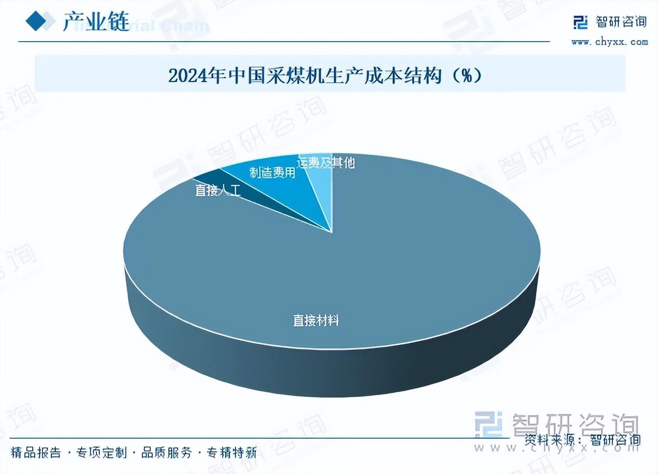 从成本结构来看,目前,我国采煤机生产成本以金属材料、电气元件、密封件、铸件、电机、液压系统、轴承在内的直接材料等直接材料为主,占比超80%,因此,采煤机企业需要与上游材料及零部件供应商建立长期稳定的战略合作关系,通过集中采购、技术协同等方式,保障原材料供应的稳定性与质量,同时积极推动上游企业进行技术创新,降低材料成本、提升零部件性能,以此优化自身成本结构,增强在市场中的竞争力。