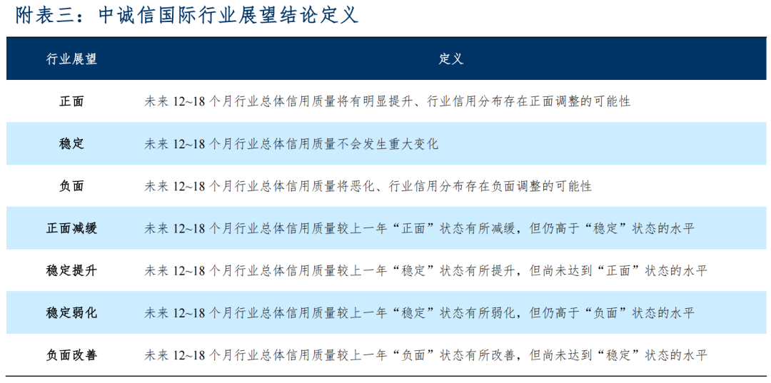 该展望反映了中诚信国际对该行业未来12~18个月基本信用状况的预测。