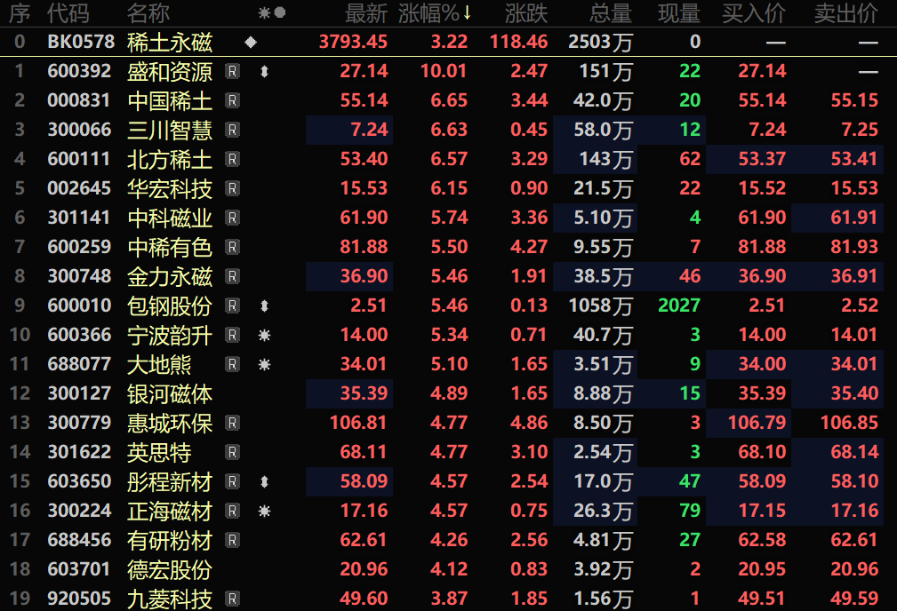 华源证券2月8日研报指出:供给格局紧张下游补库,氧化镨钕突破阶段新高。供给端,政策面以及供应面偏紧支撑,氧化镨钕现货供应持续紧缺,上游持货商低价出货意愿较低。需求端,下游磁材企业由刚需采购转为备货采购。包钢股份和北方稀土一季度稀土精矿交易价格环比上涨2.4%,支撑稀土价格中枢上移。建议关注:广晟有色、中国稀土、北方稀土、金力永磁、宁波韵升、正海磁材等。