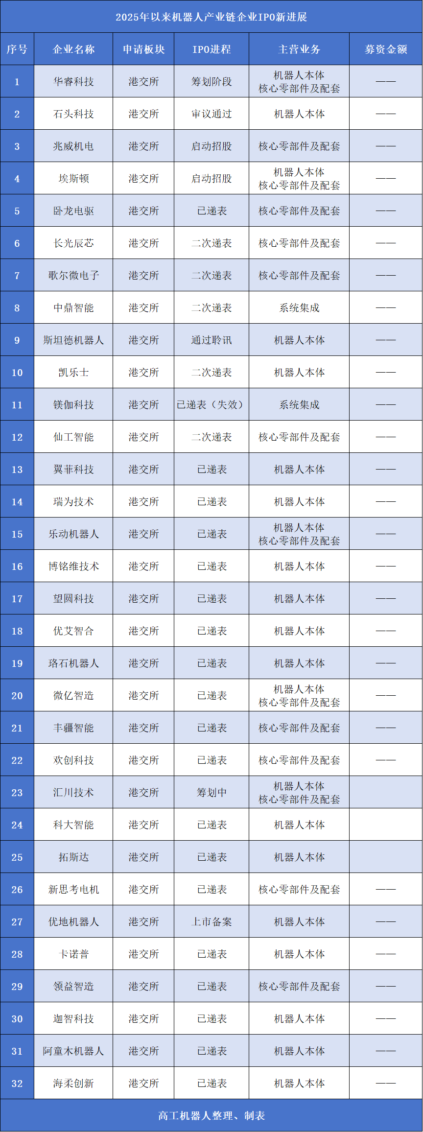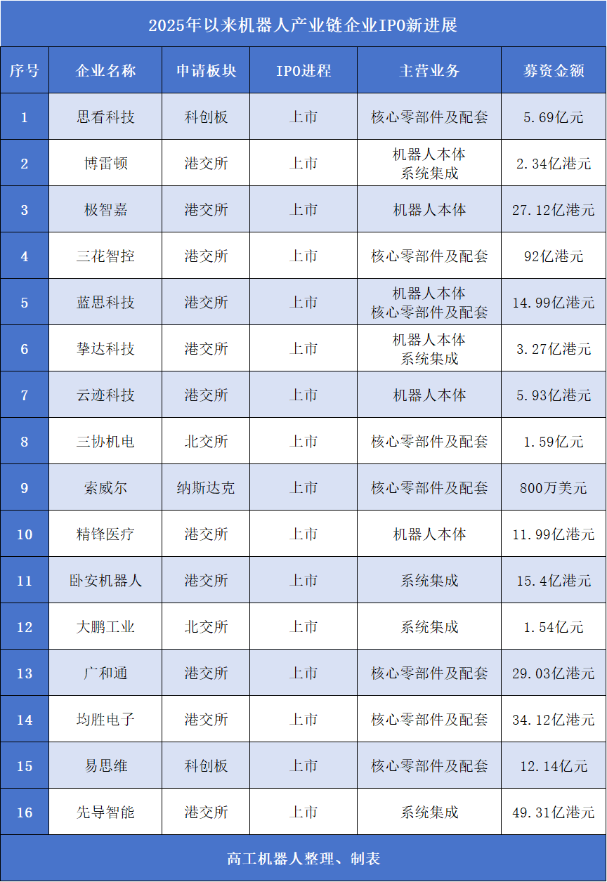 2025年以来,随着具身智能、人形机器人等前沿技术加速落地,机器人产业链迎来新一轮上市热潮。