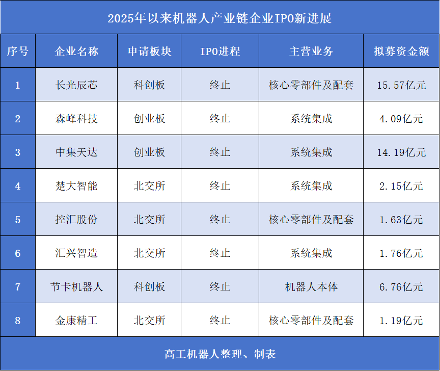 2025年以来,8家机器人产业链企业终止IPO