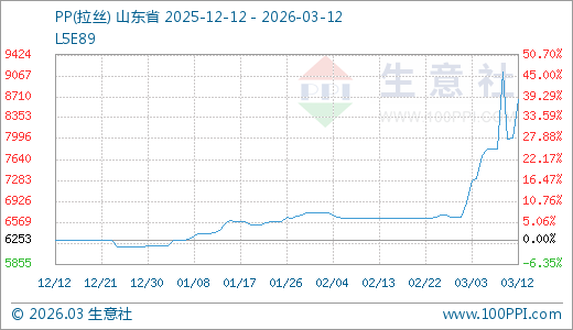 PP 03月12日最新价格8660.00元/吨,最近5天上涨10.65%,10天上涨25.63%,20天上涨30.42%,60天上涨35.81%,90天上涨38.49%。