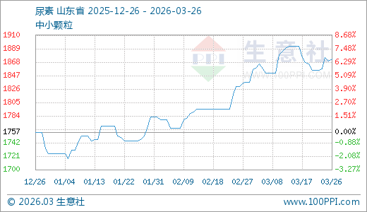 据生意社监测,尿素03月26日最新价格1872.50元/吨,最近30天上涨3.03%,60天上涨7.31%。