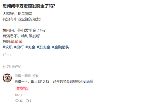 事实上,一年一度的申万宏源员工讨薪快成为业内保留节目了。如2022年年中,申万宏源有员工群发邮件讨薪,催发2021年年终奖。2023年年中,申万宏源员工通过写诗讨薪,“盘剥人心,未能聚心,企业基业难立......”