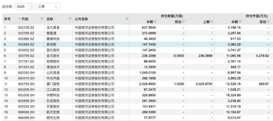 此外,银河证券前三季度投资收益111.49亿元,同比增长645%。Wind数据显示,截至三季度末,银河证券重仓股包括龙大美食(002726.SZ)、普路通(002769.SZ)、惠威科技(002888.SZ)、英派斯(002899.SZ)等17家公司。