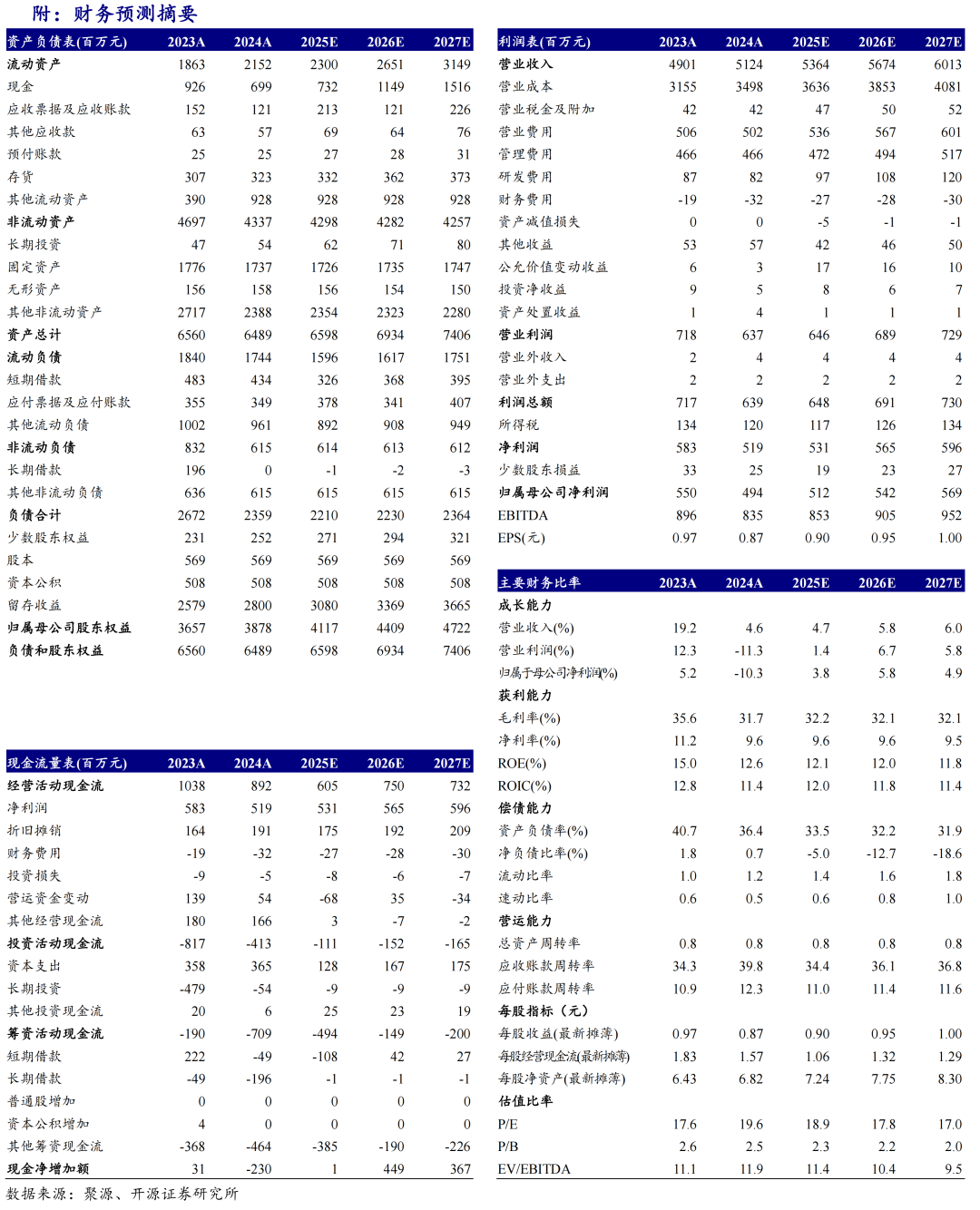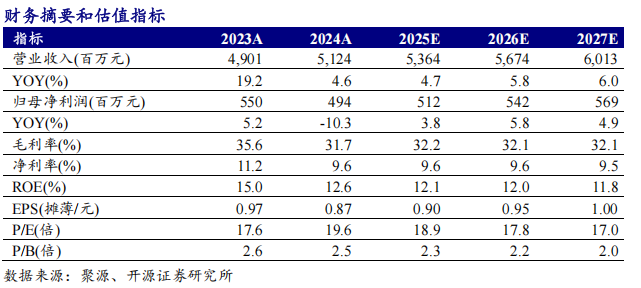 公司发布2025年三季报。2025年前三季度收入42.8亿元,同比+4.4%;归母净利润4.49亿元,同比+0.3%。单2025Q3收入22.9亿元,同比+4.7%;归母净利润4.10亿元,同比+5.3%,整体来看公司业务稳定增长。考虑到整体消费环境承压,我们下调盈利预测,预计公司2025-2027年归母净利润为5.1、5.4、5.7亿元(前值为5.7、6.4、7.0亿元),EPS为0.90、0.95、1.00元(前值为1.00、1.12、1.22元),当前股价对应PE为18.9、17.8、17.0倍。公司拟以前三季度利润为基准,每10股派发现金红利1.00元(含税),分红率12.5%,增加中期分红提振股东回报,维持“增持”评级。