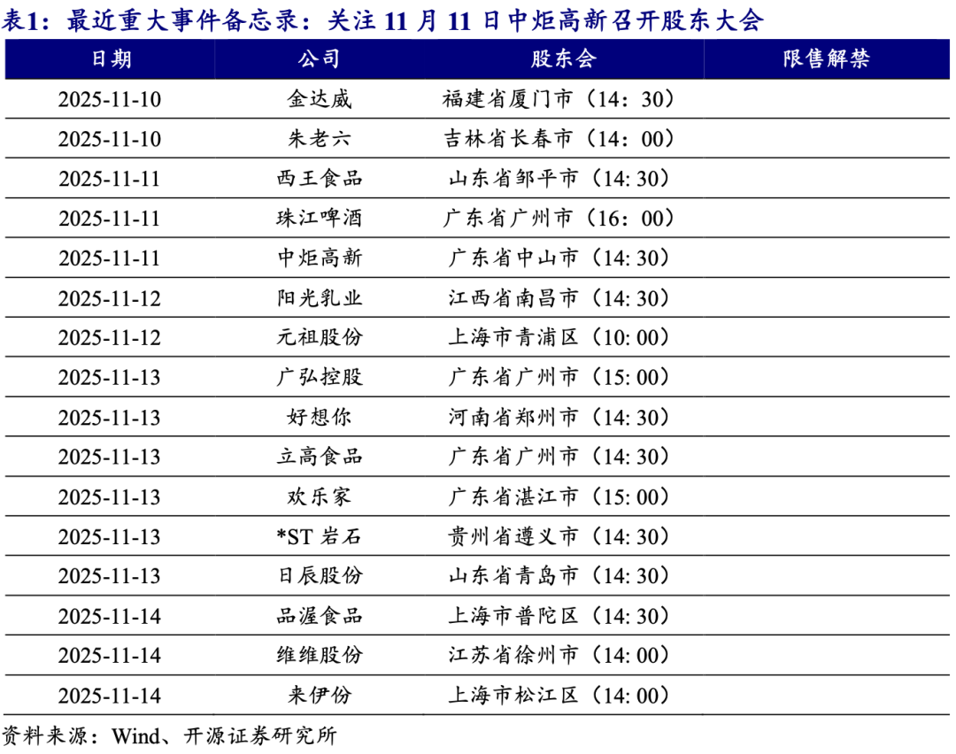 2、食品饮料板块中,预加工食品(+2.3%)、烘焙食品(+1.1%)、其他酒类(+0.9%)表现相对靠前。海欣食品、三元股份、欢乐家涨幅领先。