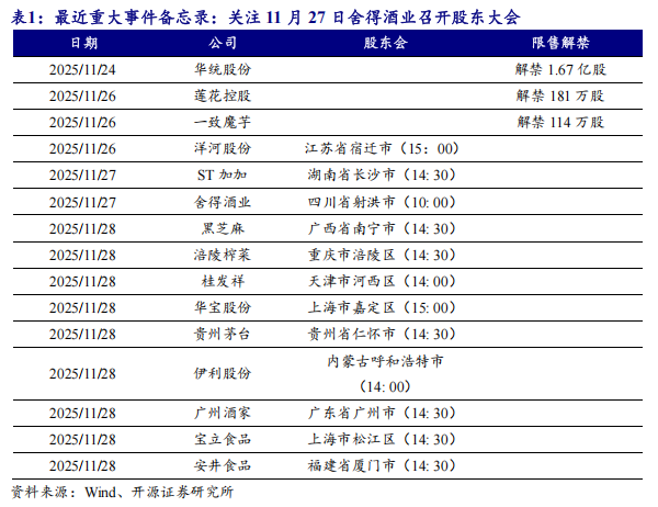 1、11月25日食品饮料板块涨幅为0.1%,跑输沪深300指数约0.9pct,在申万31个子行业中排名第28。