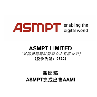 香港上市公司ASMPT(00522.HK)公布,就出售先进封装材料国际(AAMI)的全部49%股权