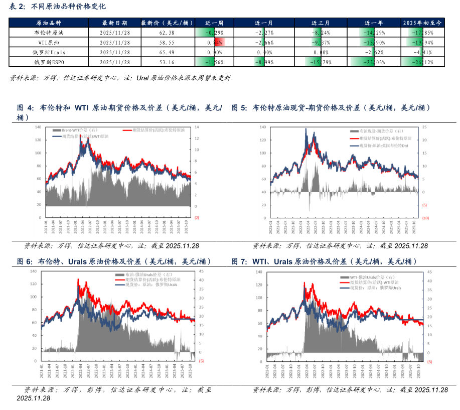 本文源自报告:《原油周报:市场关注俄乌和平谈判进展,国际油价震荡》 | 发布时间:2025年11月30日 | 发布报告机构:信达证券研究开发中心|报告作者:刘红光,石化行业联席首席分析师,S1500525060002;胡晓艺,石化行业分析师,S1500524070003。