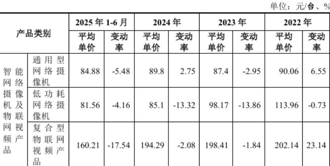 然而,公司的主要产品的销售价格显然已经承压不小。报告期内,通用型网络摄像机平均单价分别为90.06元/台、87.4元/台、89.8元/台以及84.88元/台,变动率分别为6.55%、-2.95%、2.75%以及-5.48%;低功耗网络摄像机平均单价分别为113.96元/台、98.17元/台、85.1元/台以及81.56元/台,变动率分别为-0.73%、-13.86%、-13.32%以及-4.16%;复合型物联网视频产品平均单价分别为202.14元/台、198.41元/台、194.29元/台以及160.21元/台,变动率分别为23.14%、-1.84%、-2.08%以及-17.54%。
