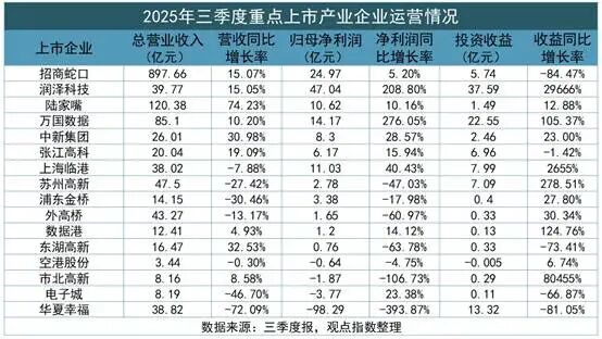 利润层面,头部企业盈利爆发力突出,张江高科、中新集团、上海临港前三季度归母净利润同比分别增长15.94%、28.57%、40.43%,核心业务与投资布局的协同效应持续释放。