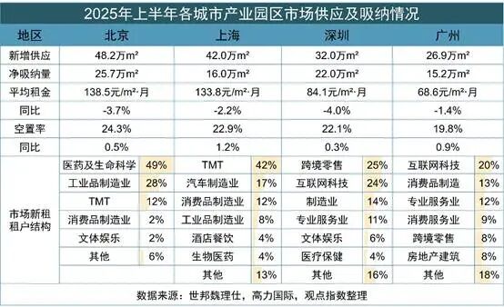 从需求结构来看,科技及关联行业已成为园区租赁市场的核心驱动力,且其对不同城市的需求拉动作用呈现出鲜明的产业特色。