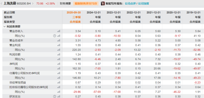 业绩方面,2025年前三季度,上海洗霸实现营收3.54亿元,同比下降5.52%;归母净利润为1.19亿元,同比增长146.80%。