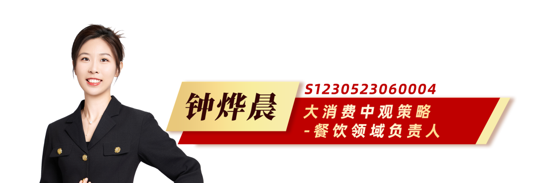 本轮自2023年初以来的餐饮行业复苏,其幅度由需求决定,节奏由供给决定。细分赛道来看,茶饮细分领域的节奏领先西式快餐及正餐等细分领域约1至2个季度,头部茶饮品牌已于2025Q1逐步回暖,我们预计头部西式快餐/头部正餐分别已于2025Q2/2025年7-8月实现同店持平或回正。