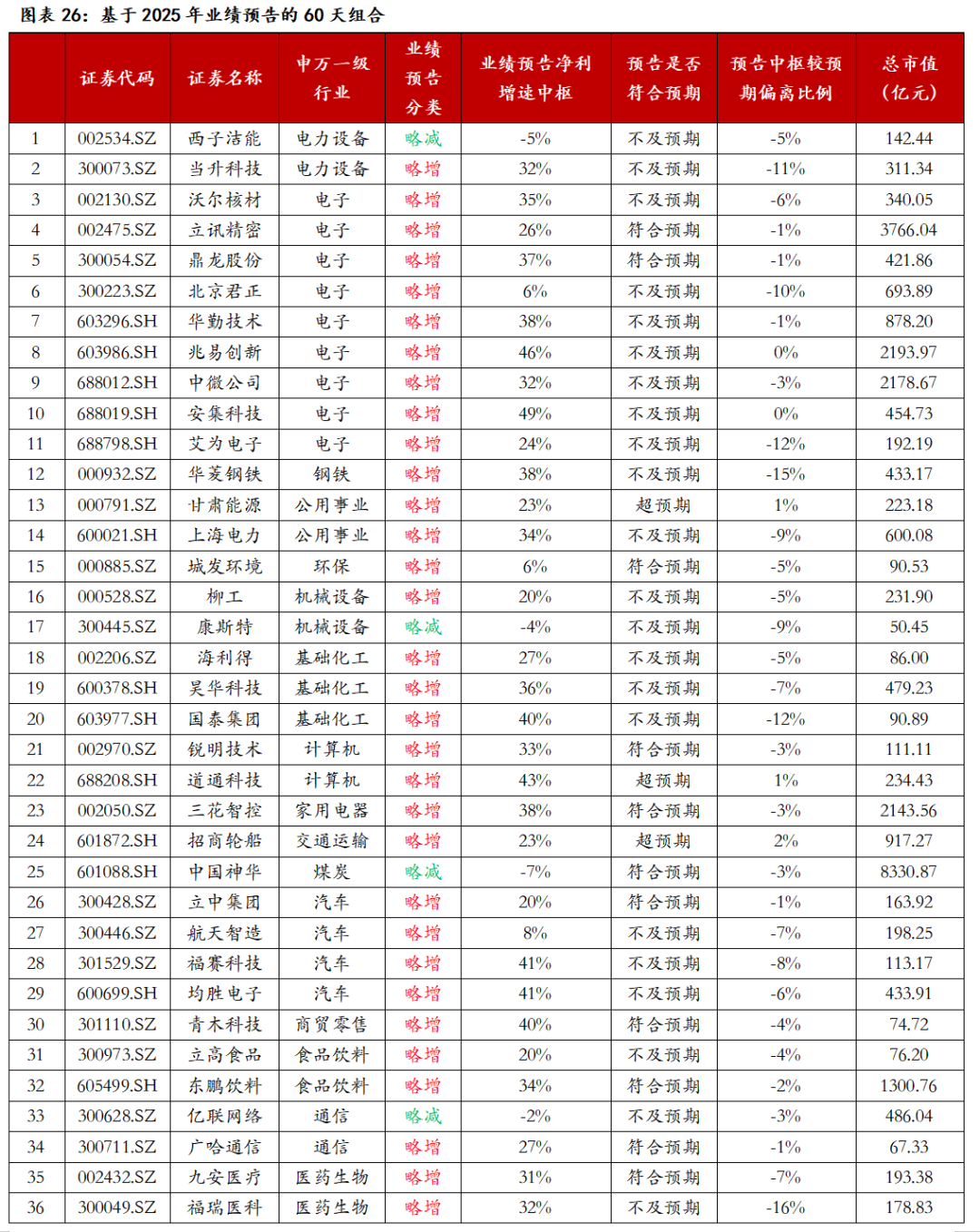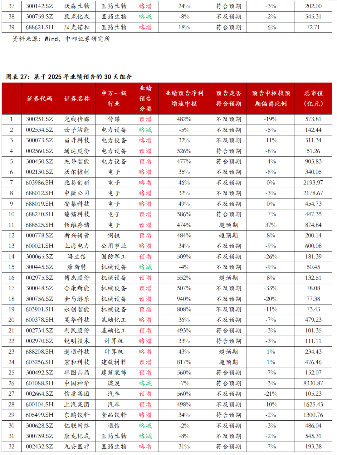 基于A股对业绩预告的反应机制与偏好,在此也构建了2025年报业绩预告的30天和60天可行股票池。