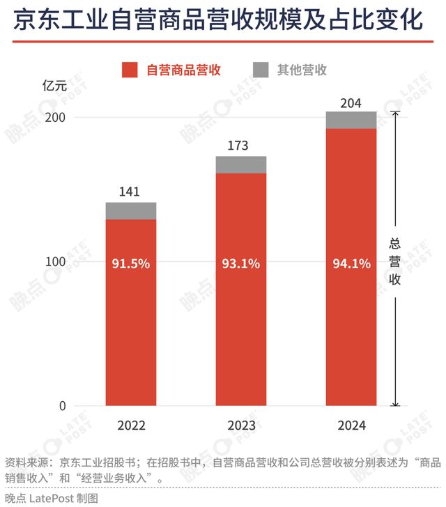 招股书显示,京东工业的收入以自营商品销售收入为主,2022 年至 2024 年从 129 亿元增至 192 亿元,占比始终超过 90%。同时,服务于更长尾需求的 POP 平台所获得的交易佣金、广告、服务等收入,每年稳定约 12 亿元。