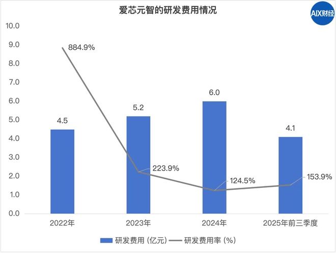 在爱芯元智的支出结构中,研发费用常年超过收入的一倍以上。2024年,公司的研发费用为5.9亿元,研发费用率高达125%。换句话说,公司每赚1元,就要花1.25元在研发上。黑芝麻智能的情况更夸张,2024年的研发费用率高达302%。