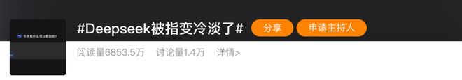 一时间,‘DeepSeek被指变冷淡了’直冲微博热搜,小红书、知乎上满是人们的不解与吐槽。