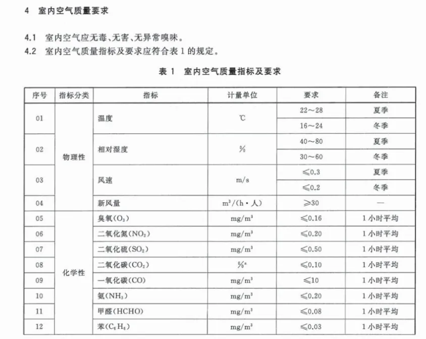 室内空气相对湿度要求:夏季40%至80%,冬季30%至60% 图源:国家标准GB/T 18883-2022《室内空气质量标准》