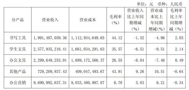这与陈氏家族的传统优势业务,形成鲜明对比。同期,晨光的书写工具,毛利率达44.12%,学生文具的毛利率达45.57%。