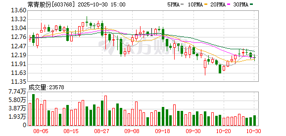 10月30日,常青股份(603768)公布2025年三季报,公司营业收入为25.6亿元,同比上升4.2%;归母净利润亏损6804万元,同比下降196.4%;扣非归母净利润亏损7308万元,同比下降222.9%;经营现金流净额为-3.7亿元,同比下降169.0%;EPS(全面摊薄)为-0.286元。