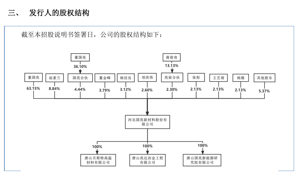 国亮新材的发展轨迹可追溯至2002年11月,其前身是唐山市国亮特殊耐火材料有限公司,初始注册资金1000万元,由董国亮与妻子赵素兰共同出资设立。