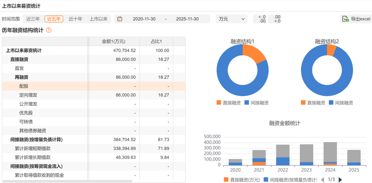 除了借款融资外,2021年和2024年,天马科技两次定增融资8.6亿元。直接融资和间接融资已经逼近50亿元。
