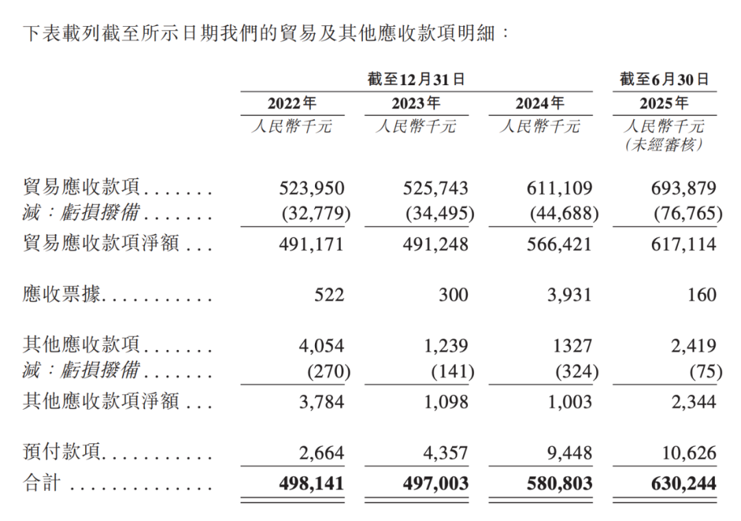 招股书显示,2022年至2025年上半年,欧林生物贸易应收款项分别为5.24亿元、5.25亿元、6.11亿元和6.94亿元,占流动资产比重超过六成。