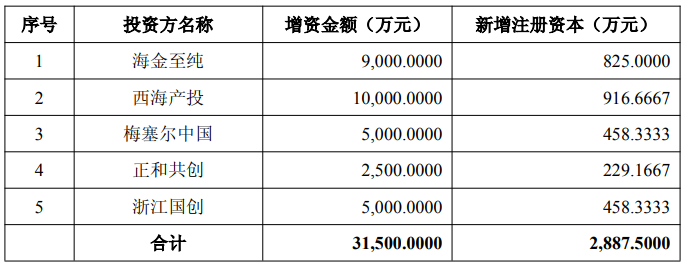 增资后,标的公司的注册资本将由1.38亿元增加至1.67亿元。具体投资方如下: