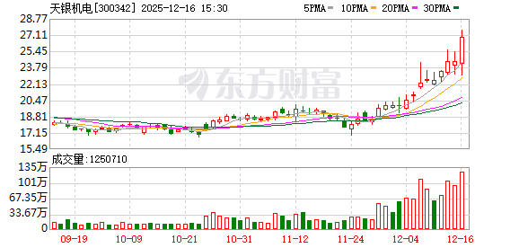 12月16日,天银机电(300342)发布公告,控股股东佛山市澜海瑞兴股权投资合伙企业(有限合伙)于2025年12月15日减持公司股份362万股,占公司总股本的0.85%。