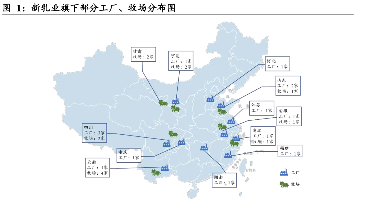 放眼新乳业整个版图,公司已经从此前扎根于西南和山东(四川华西,云南雪兰,华东山东琴牌、朝日唯品)一带,而通过收购夏进牛奶(寰美乳业)、湖南南山和福建澳牛,延伸到西北、华中及华南等地区。
