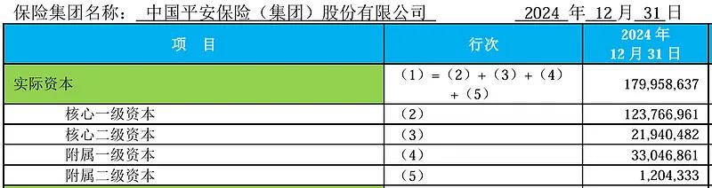 偿付能力充足率是用实际资本/最低资本计算的,而实际资本中,净资产占了大头,比如下图的平安,可以看到平安的实际资本1.79万亿,其中1.3万亿都是净资产: