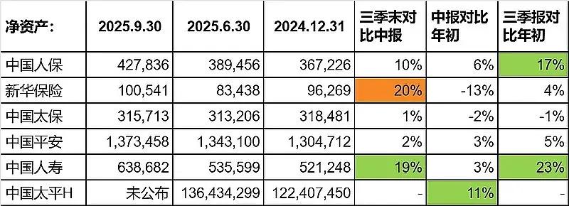 这是2025年前三季度各公司的净资产情况: