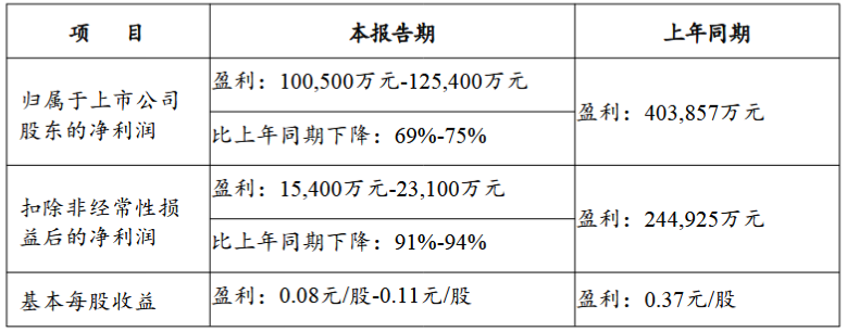 1月30日,招商蛇口(001979)发布公告,公司预计2025年归母净利润10亿元至12.5亿元,同比下降69%至75%,具体数据如下: