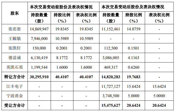 本次交易前后,相关各方持有凯德石英的股份数量及享有的表决权情况如下: