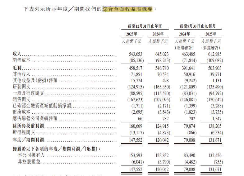 根据招股书披露的财务数据,百普赛斯在2023年、2024年及2025年前三季度的营收分别为5.4亿元、6.5亿元及6.1亿元。2024年营收同比增长约18.7%,2025年前三季度同比增长达32.3%,显示出营收端的韧性。