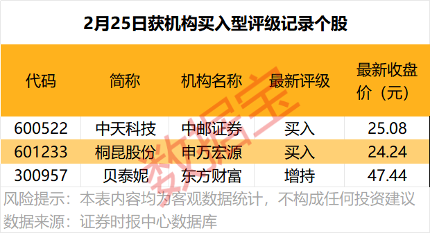 3股今日获机构给予买入型评级