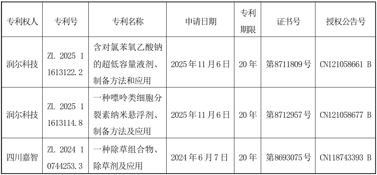 2月26日,国光股份(002749)发布公告,近日,公司子公司四川润尔科技有限公司获得两项国家知识产权局颁发的《发明专利证书》,另一子公司四川嘉智生态科技有限公司获得一项发明专利证书。专利具体情况如下: