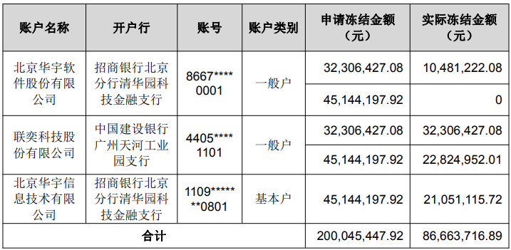 3月4日,华宇软件(300271)发布公告,公司及子公司银行账户部分资金被冻结的情况有新进展。根据公告,截至2026年3月3日,公司及子公司因法院裁定被冻结的资金合计为2亿元,实际冻结金额为8666万元,已超过之前裁定的保全总金额7745万元。