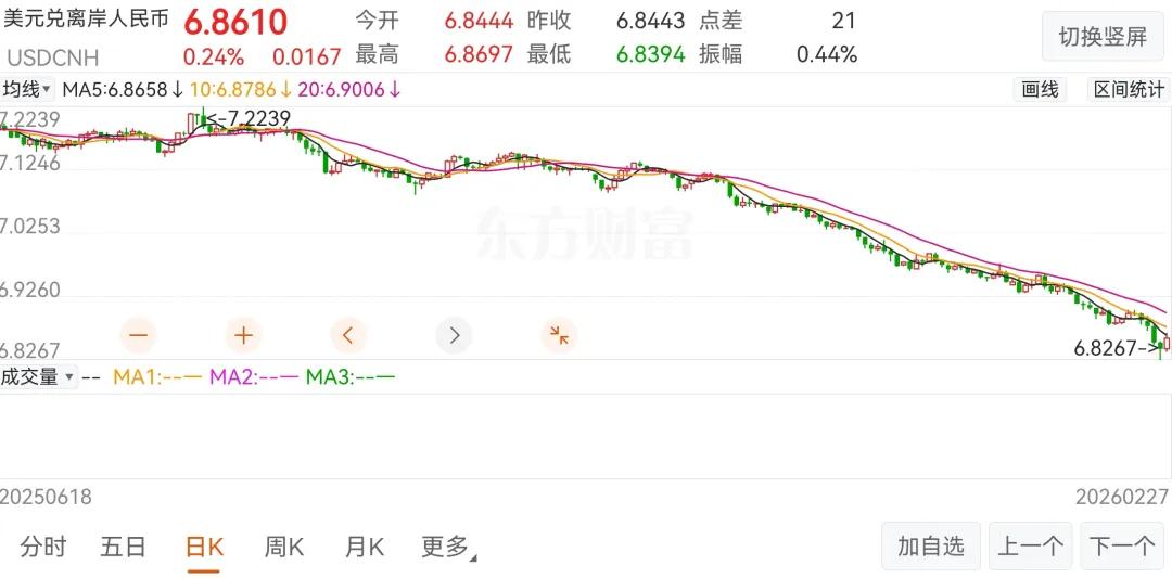 最近人民币已经破6.9了,离岸汇率一度升到6.82出头。每次人民币走强,总有一部分行业和上市公司获益,股市里也有一拨人因而赚得盆满钵满。