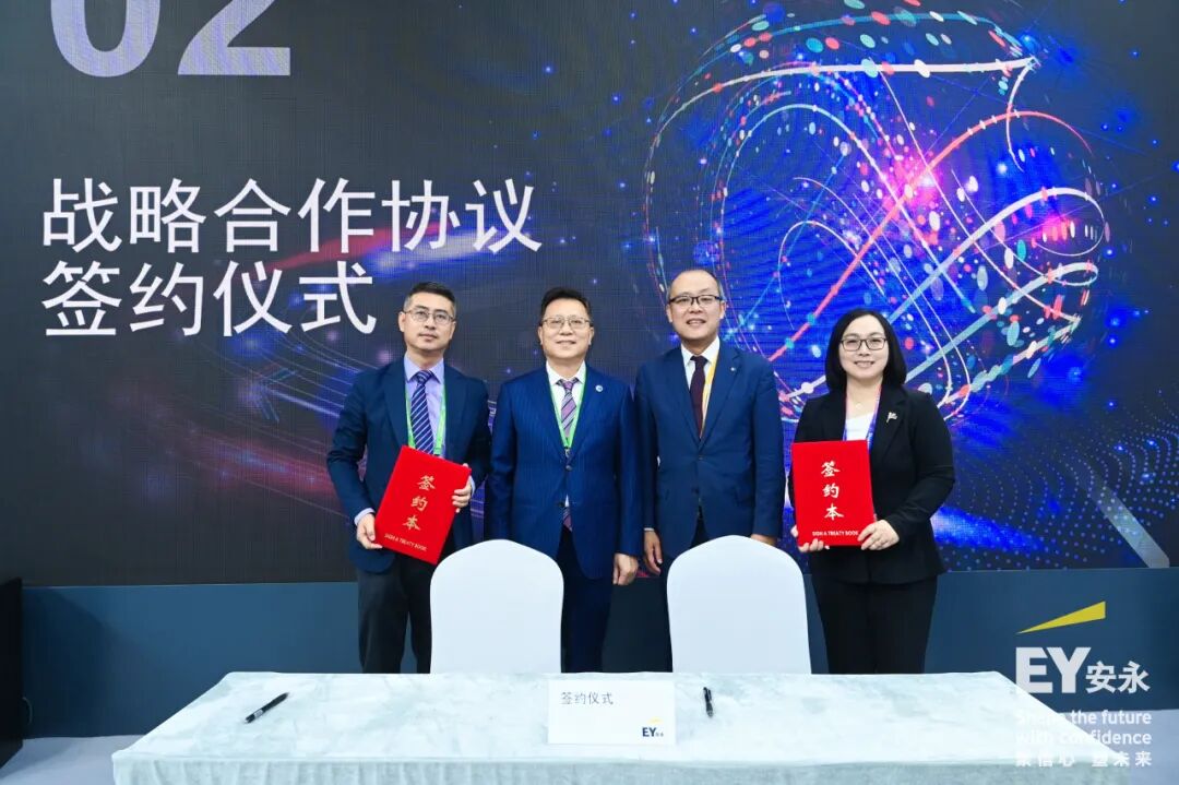 签约仪式由安永1气候变化与可持续发展服务合伙人张彬主持。在上海环交所董事长赖晓明与安永大中华区业务主管合伙人毕舜杰的见证下,上海环交所副总经理彭峰与安永华中区主管合伙人夏俊作为双方代表正式签署协议。