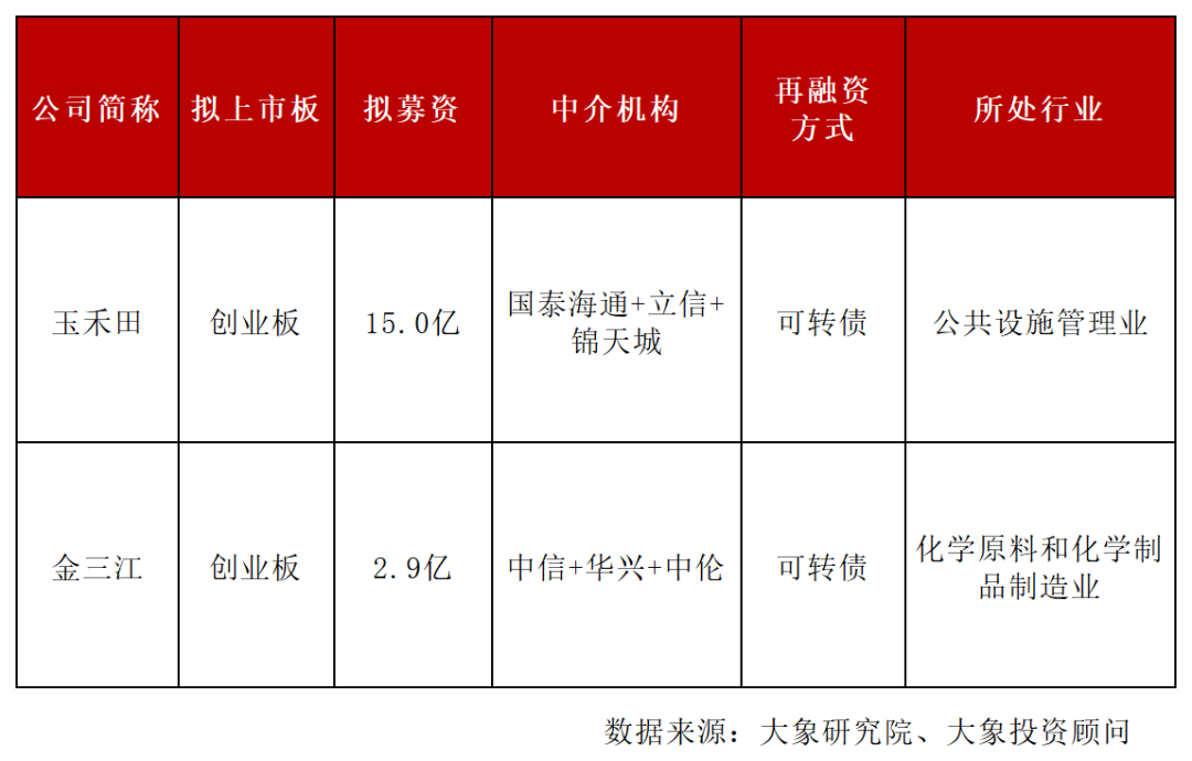 玉禾田(再融资)获通过