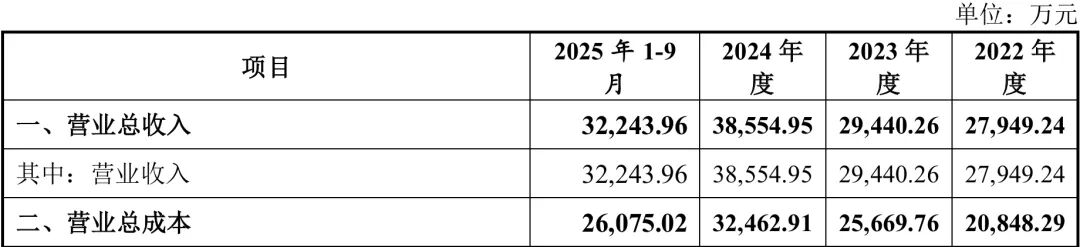2022年-2024年及2025年1-9月,公司营业收入分别为2.79亿元、2.94亿元、3.86亿元和3.22亿元;同期实现净利润分别为6602.96万元、3499.26万元、5337.90万元和5325.37万元。